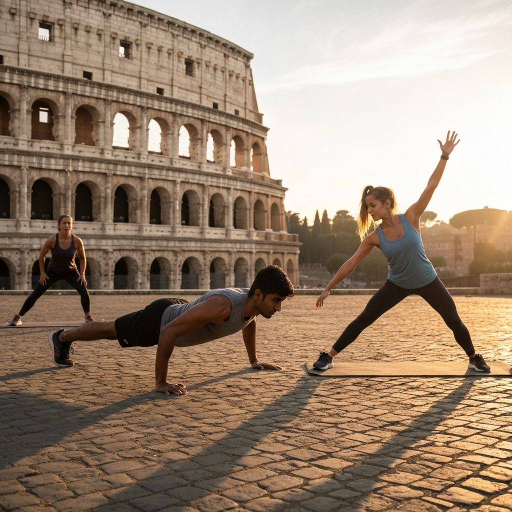 Workout pri Koloseu, na plazi v Barcelone a dalsich uzasnych miestach